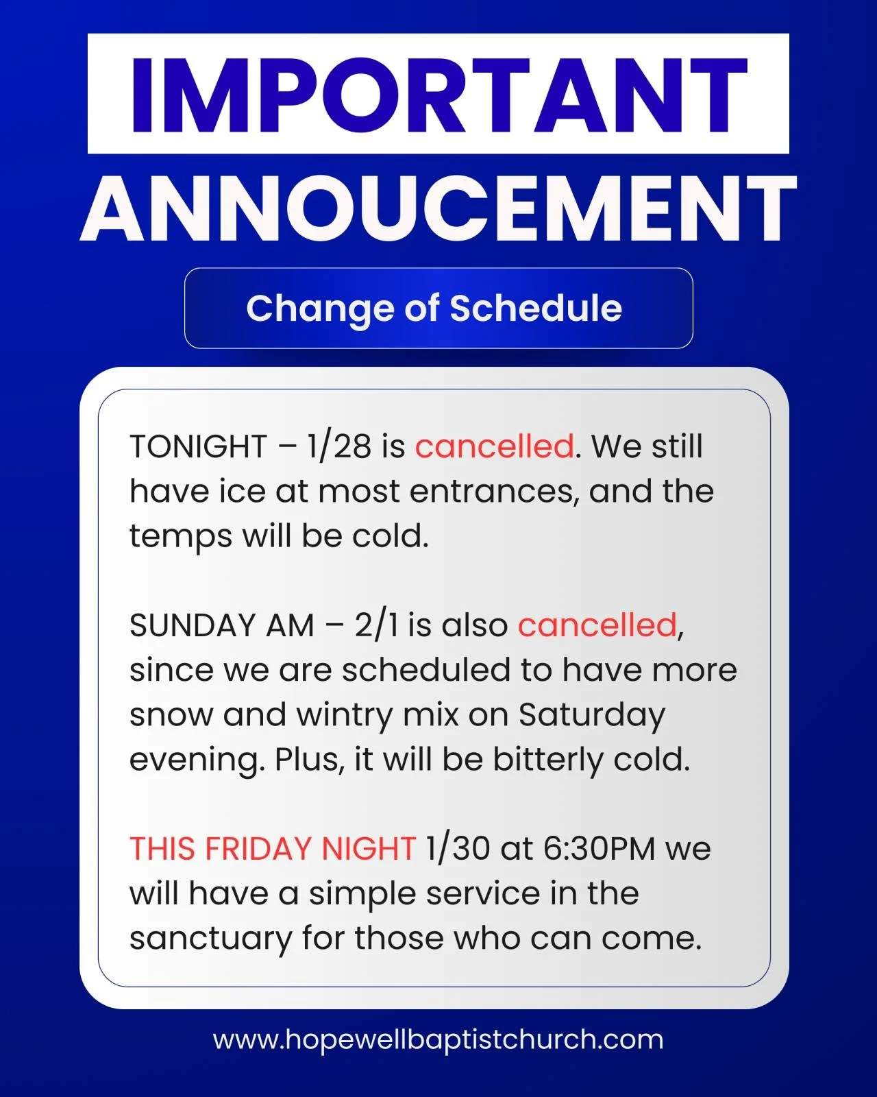 Friday Evening Service 1/30 - 6:30pm